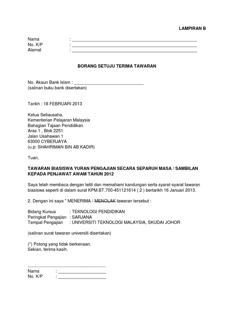 Contoh Borang Setuju Terima Tawaran Pdf