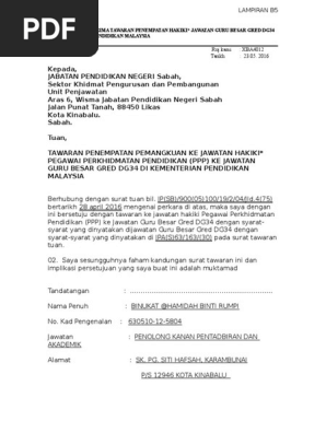 Borang Setuju Terima Tawaran Penempatan Hakiki Pdf